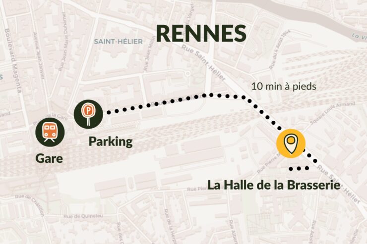 La Halle de la Brasserie se situe au pied de la gare SNCF.