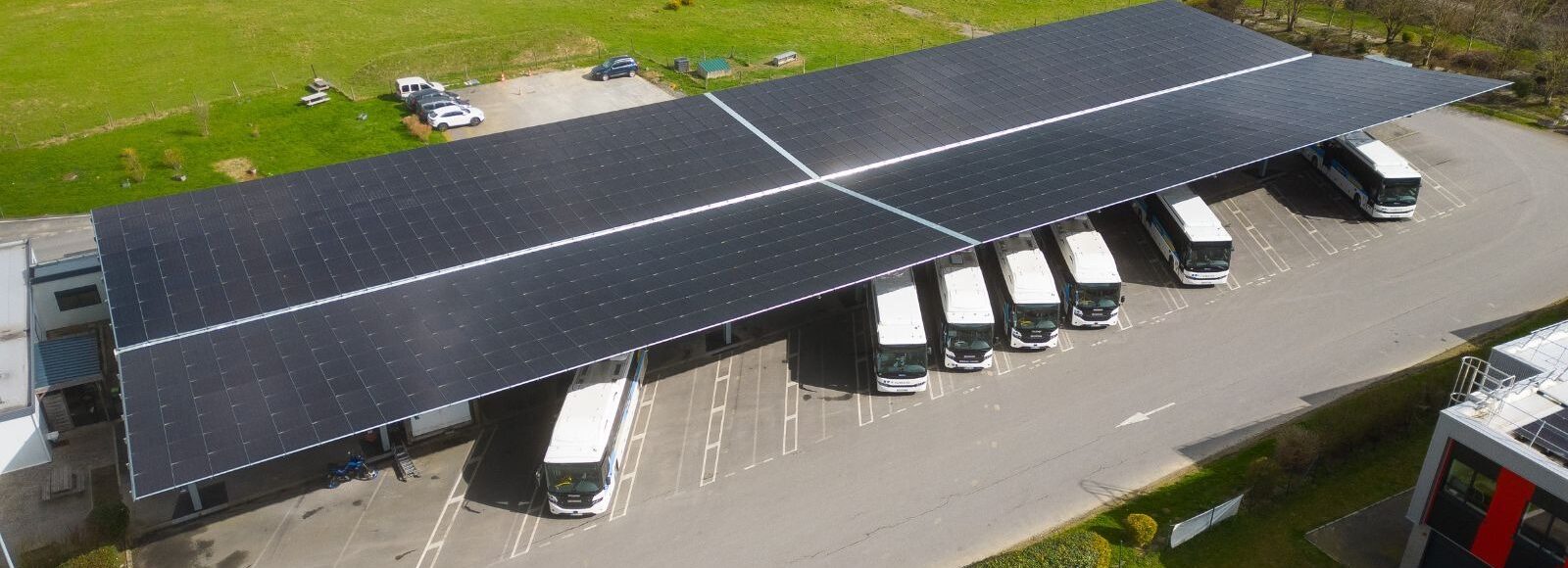De hautes ombrières photovoltaïques pour des autocars à l’abri !